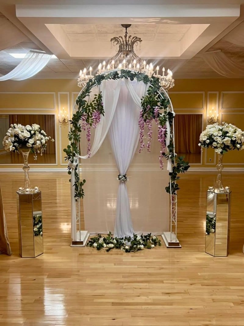 Backdrop – White Arch Decorated With Silk Greenery