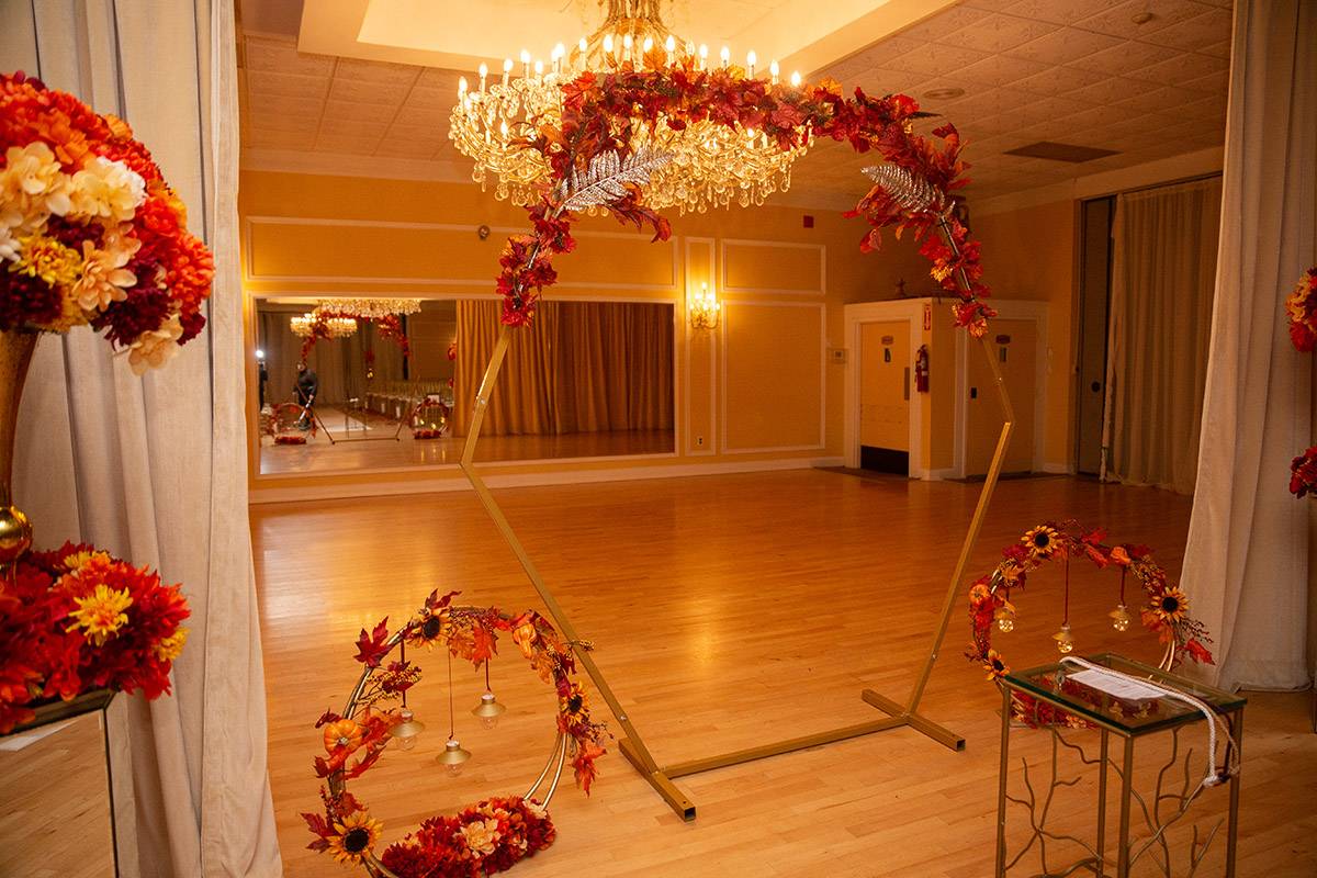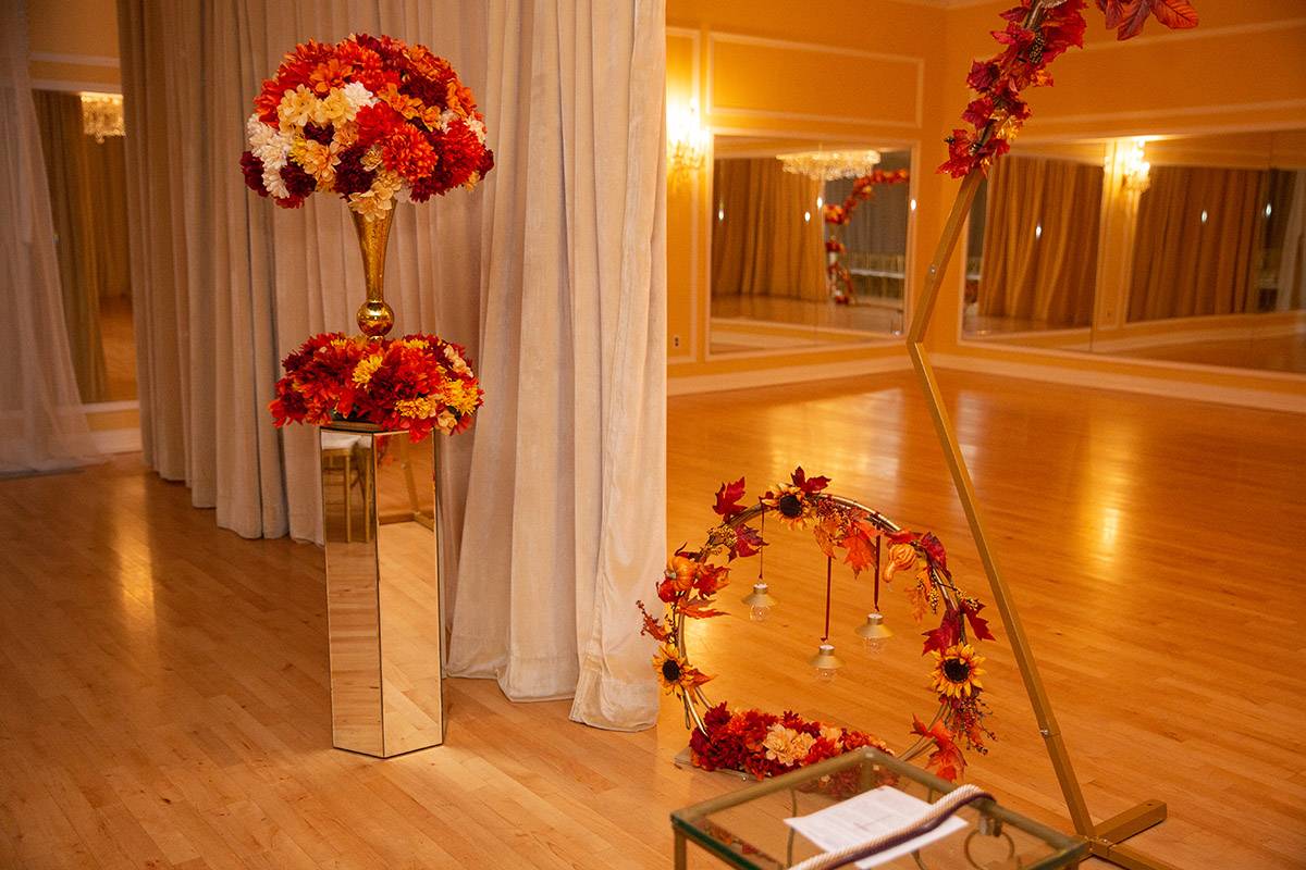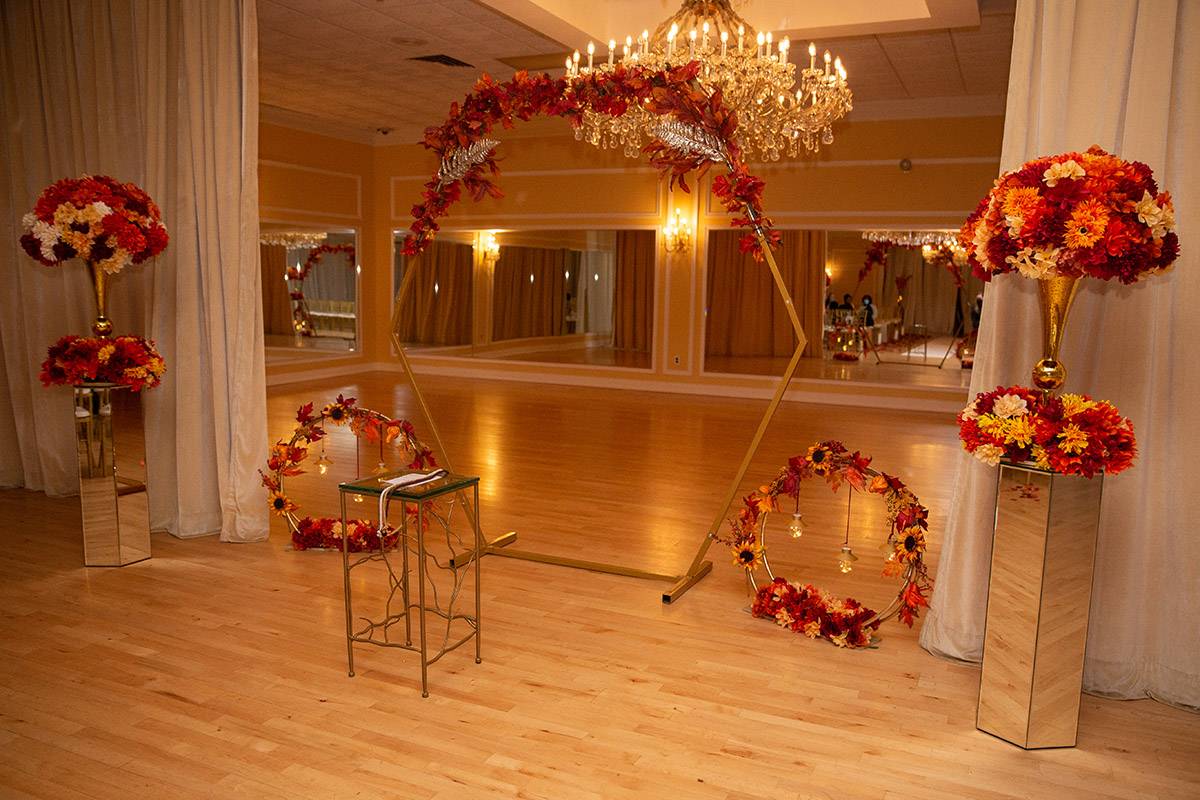 - fall flowers on hexagon or round arch