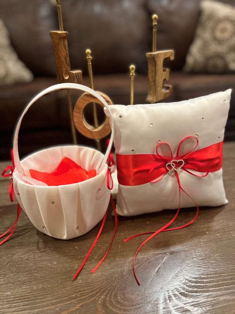 Flower Girl Basket – White & Red