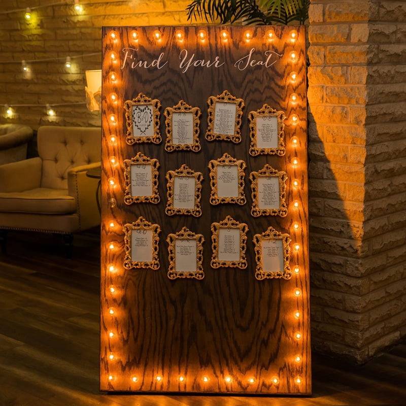 Seating Chart Stand Only – Stand provided for display purposes only. Client must supply their own seating table cards.