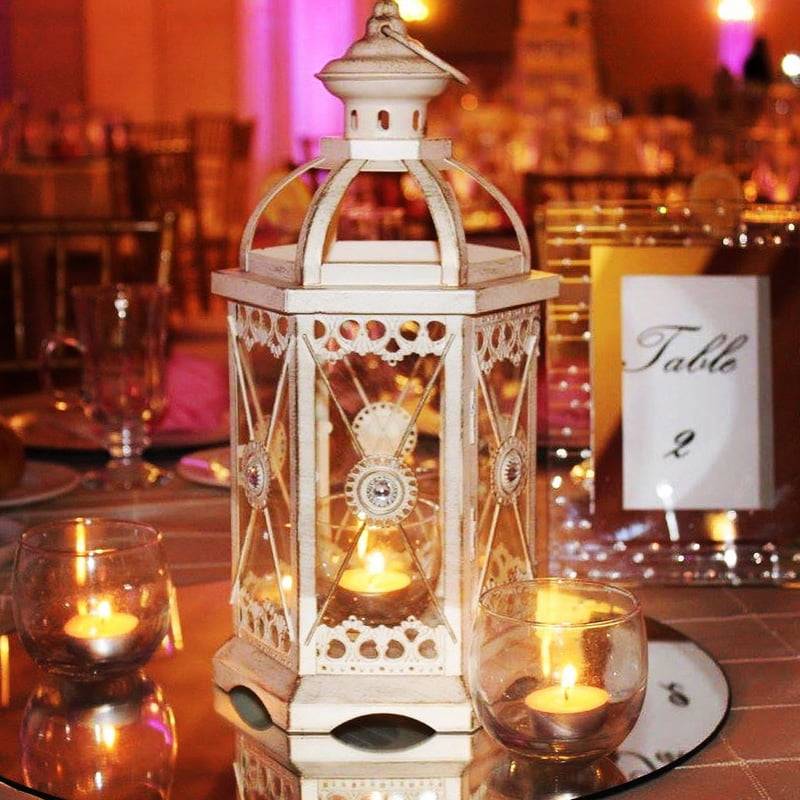 White Lantern On A Mirror With 3 Candles quantity