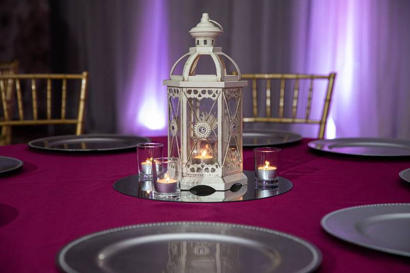 White Lantern On A Mirror With 3 Candles